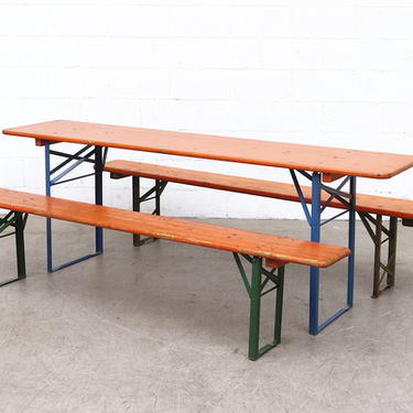 Vintage German Painted Beer Table And Benches Set Of 3 For Sale At Pamono